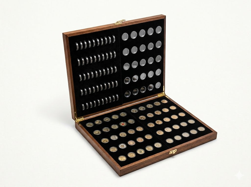 A drawer once closed in darkness opens again beneath warm light. Metal awakens. Surfaces long hidden begin to speak. Each coin holds a journey suspended in time - a silent witness waiting to be seen, held, and remembered.